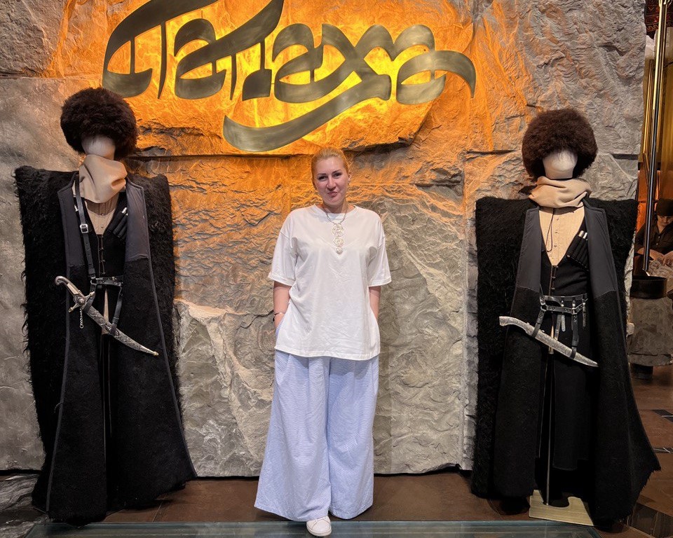 В заведении высшего класса, помимо общего зала, есть приватные места и банкетная комната. Хорошая фото-зона, где можно померить и национальные костюмы горцев и ту самую папаху. Рекомендуем попробовать суп «Пити» с бараниной, нухутом, курдюком и картофелем. Готовится в глиняном горшочке, подается с луком, сумахом и сушеной мятой.