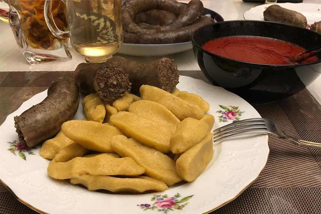 Готовится из бараней или говяжей печени и нутряного сала. Добавляется соль, специи и огромное количество рубленных трав и пряностей. Но самый неожиданный ингредиент – курага. Это та самая история сочетания несочетаемого и ошеломляющий результат в итоге.