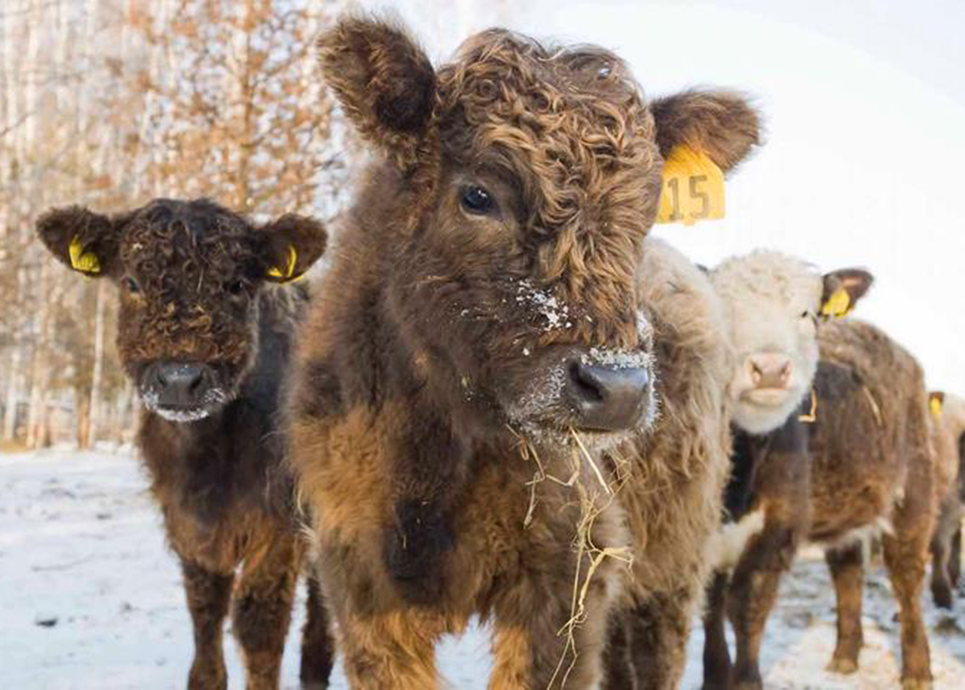 Среди фермерских животных есть удивительная корова шотландской породы. Владелец экофермы разводит редкий галловейский вид, который заметно отличается от привычной нам бурёнки.