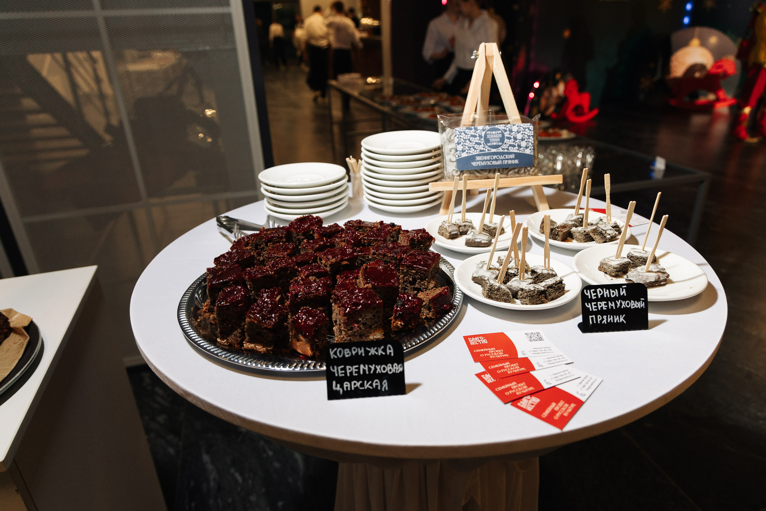 В России традиционно закусочный и сладкий столы готовились из местных специалитетов. Не отошли от традиции и организаторы вечера в «Амбассадор». Закусочный стол предлагал гостям мясные и рыбные тартины и овощные закуски. А венец вечера – сладкий стол – десерт тимбаль по-кардинальски с клубникой и фруктами. К слову, десерты готовила шеф-кондитер отеля «Амбассадор Калуга» Камилла Агеева.
