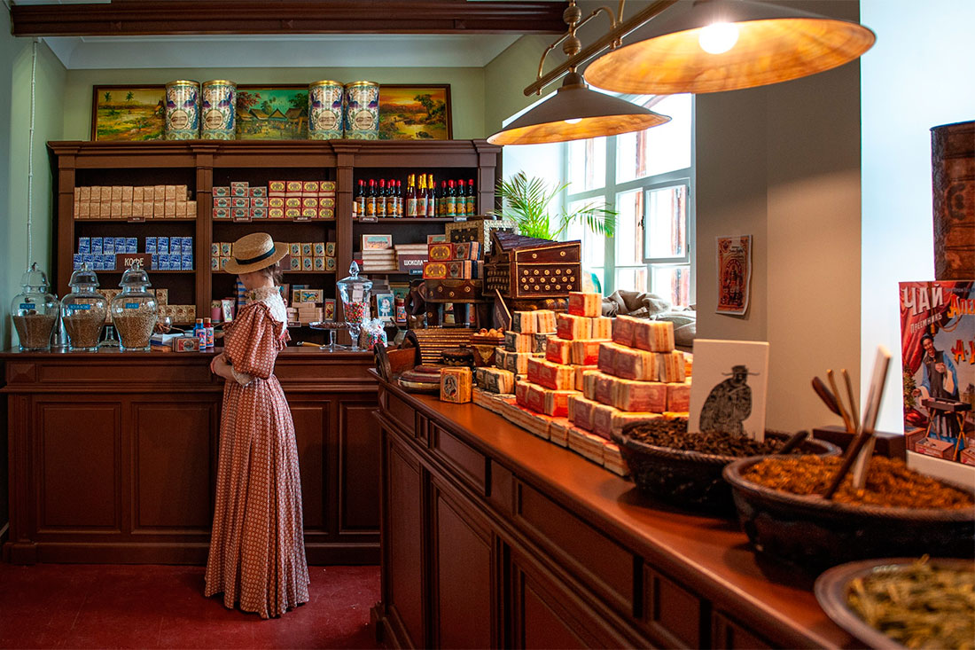 Обязательно загляните в конфетную лавку на первом этаже – там можно приобрести гостинцы ручной работы, изготовленные по книге рецептов 1914 года. А ещё здесь можно купить уникальную ватную игрушку, которая украсит ваш интерьер или станет настоящей «звездой» на вашей новогодней ёлке.